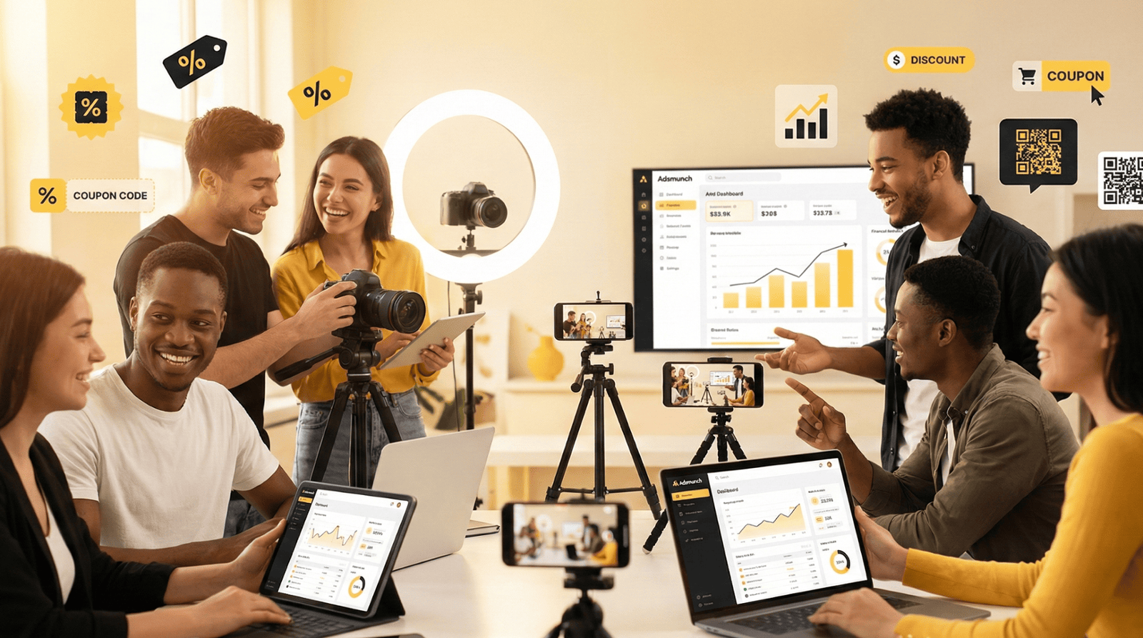 Creators earn a percentage of Adsmunch’s net profit every time a brand uses their unique coupon code.
